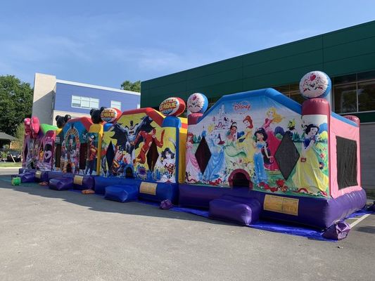 Prinses Bounce House 5 in 1 Roze opblaasbaar kasteel met glijbaan te koop.