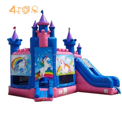 Commerciële eenhoorn opblaasbare bounce combo slide bouncy kasteel te koop