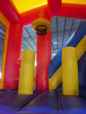In het midden van het kasteel bevindt zich een ruime springplaats met dik gepolsterde tralies om de veiligheid van kinderen tijdens het spelen te garanderen.En het ontwerp is geïnspireerd op de gevechtsscène van Transformers.Op de bovenkant van de glijbaan kan er een enorm Transformer-patroon of standbeeld zijn, waardoor kinderen zich voelen alsof ze een transformator zijn.![]()